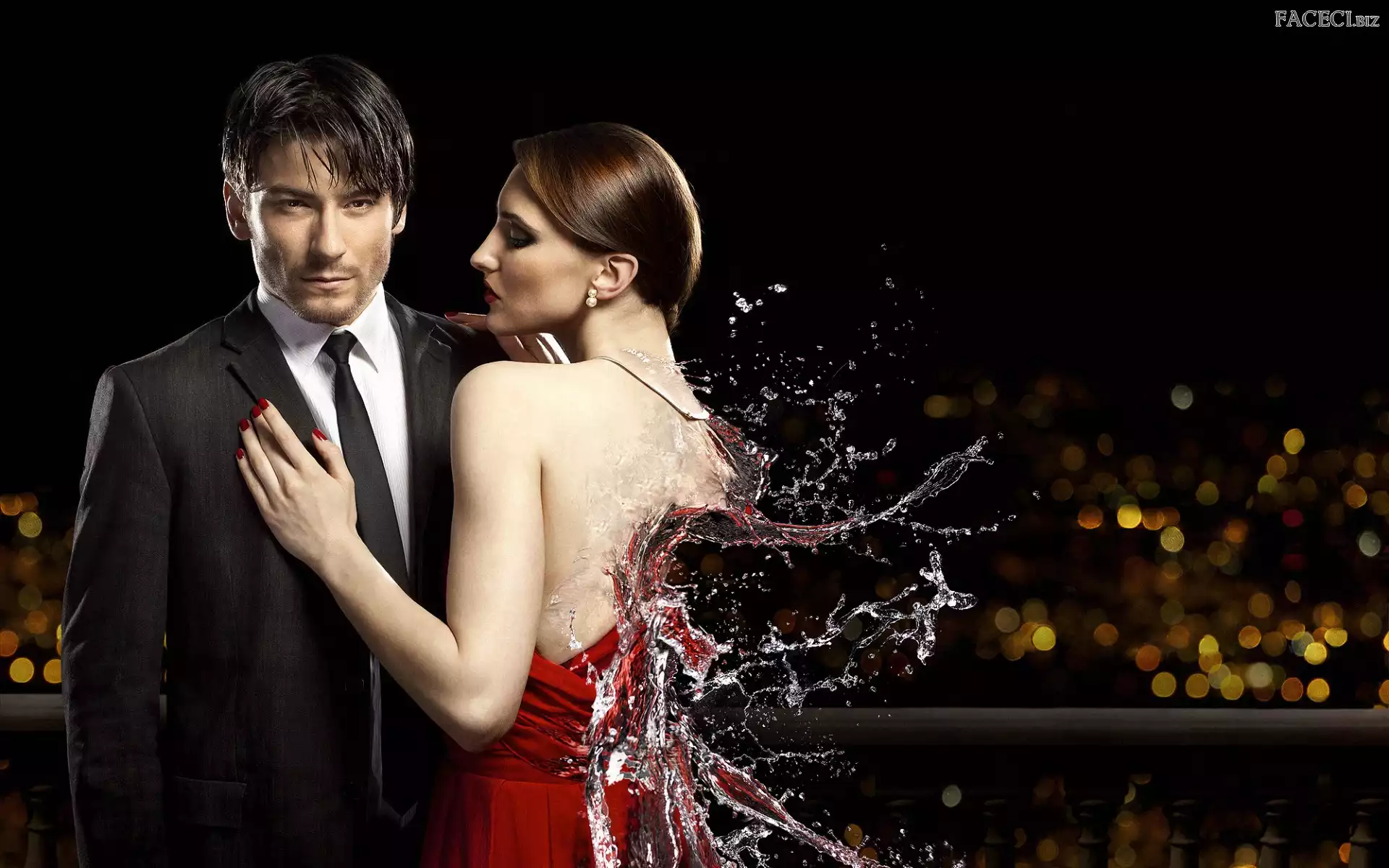 Kobieta, Mężczyzna, Czerwona, Suknia, Woda, Tło rozmyte - faceci.biz